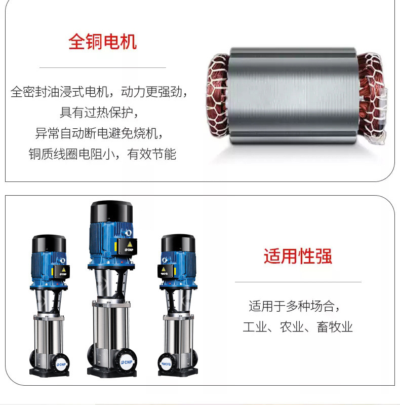 南方CDM/CDMF系列为参照欧洲标准最新自主研发的新一代、高效率非自吸立式多级离心泵。产品采用全新的工业设计,能效指标达到MEI≥0.7,具有节能、低噪、环保及机构紧凑、外观美观、重量轻、使用维护方便、可靠性高等特点。