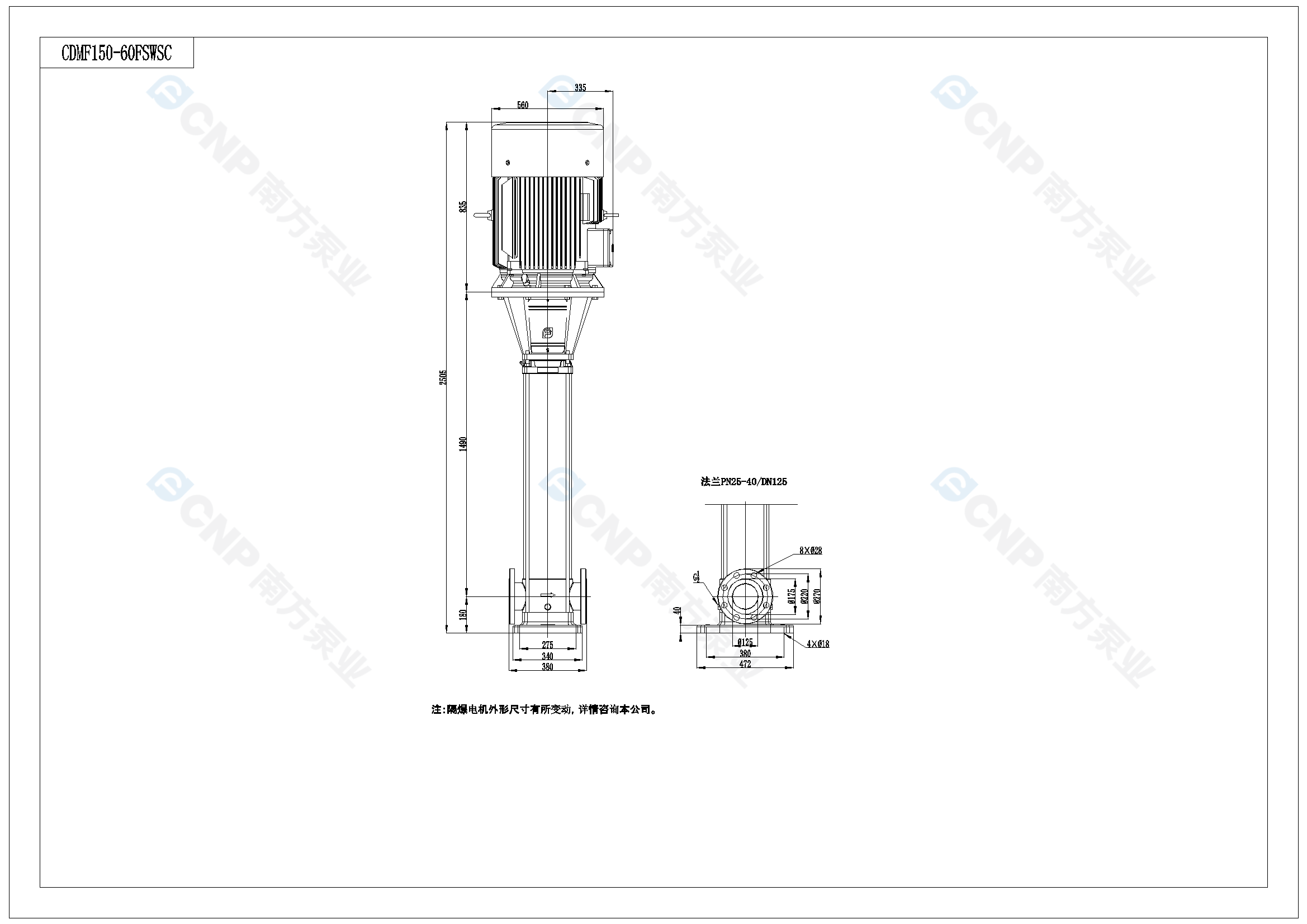 需要南方泵CDM150-6外形CAD文件 请加销售人员微信索取