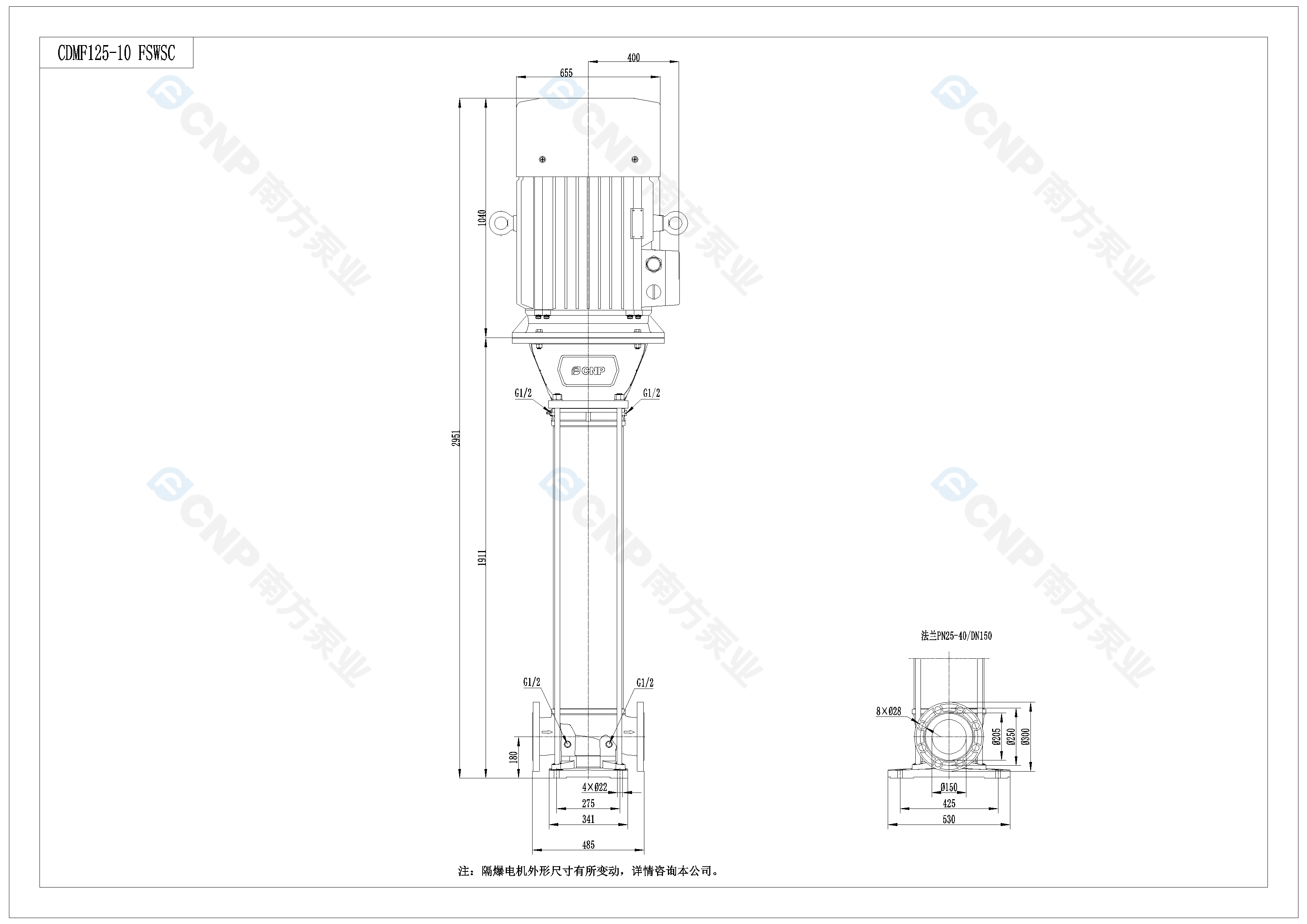 需要南方泵CDM125-10外形CAD文件 请加销售人员微信索取