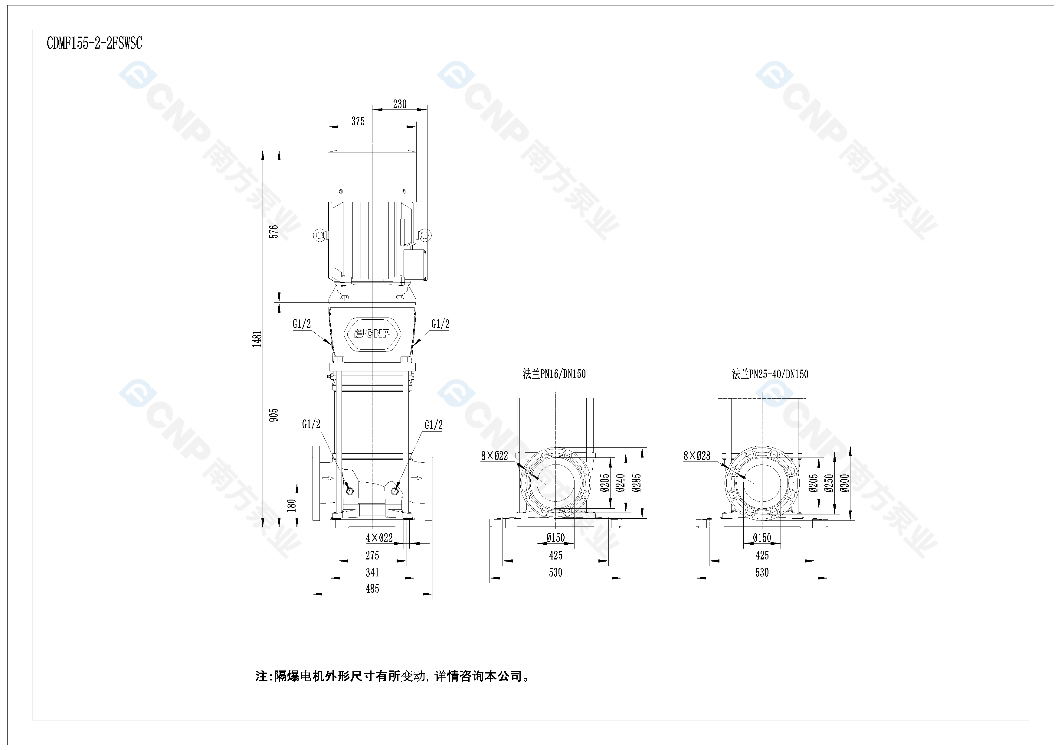您的位置: 南方泵业 > 在线选型 > 多级泵 > CDM(F)(50Hz) > CDM155-2-2