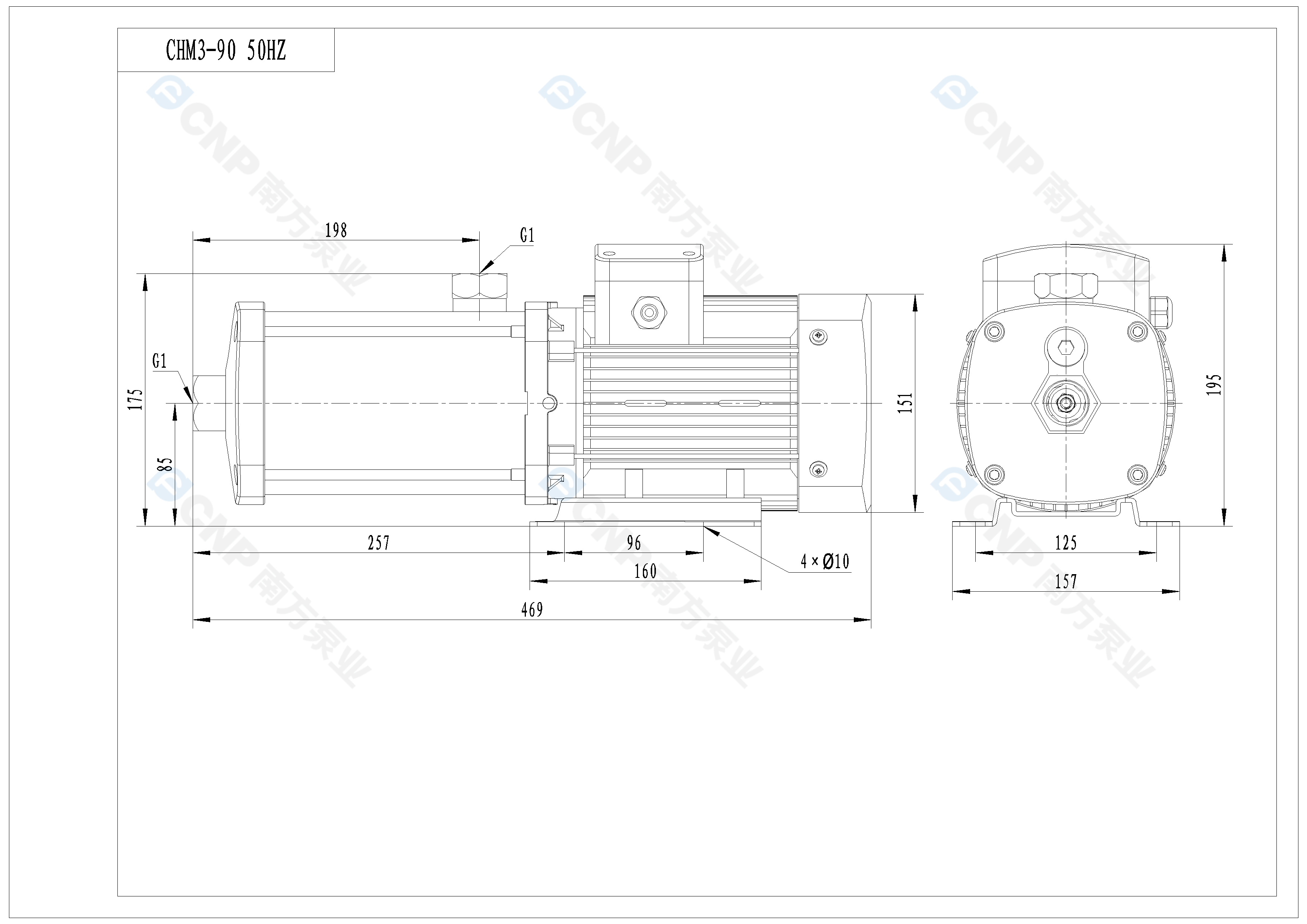 需要南方泵CHM3-90外形CAD文件 请加销售人员微信索取