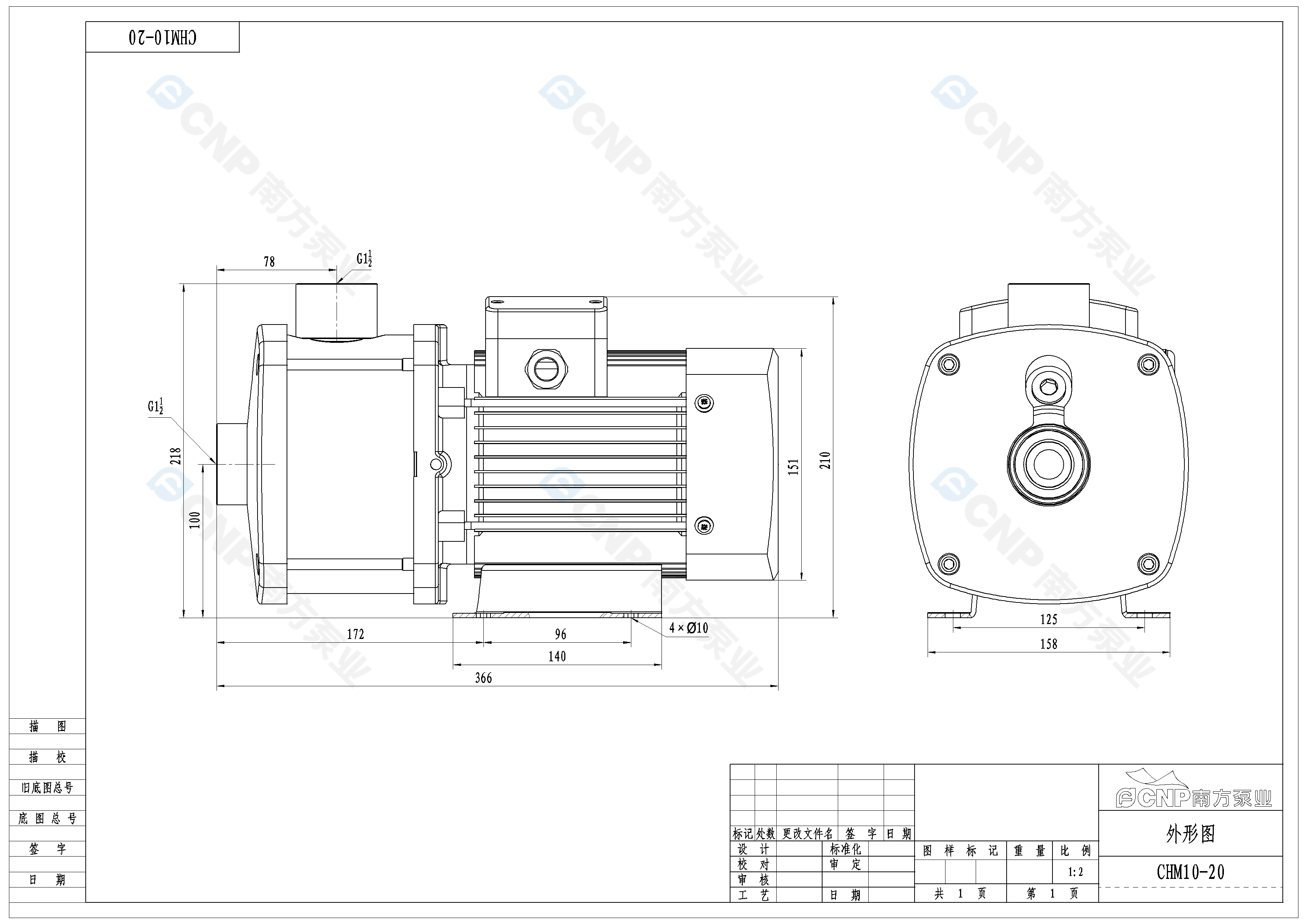 需要南方泵CHM10-20外形CAD文件 请加销售人员微信索取