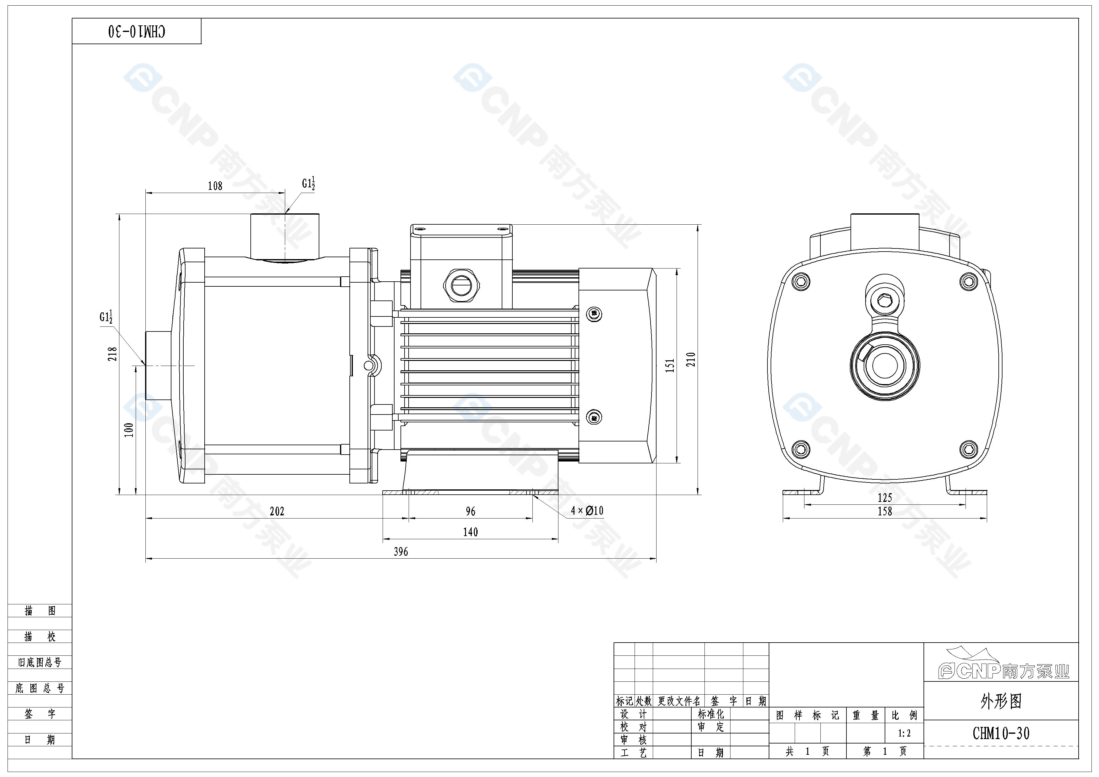 需要南方泵CHM10-30外形CAD文件 请加销售人员微信索取