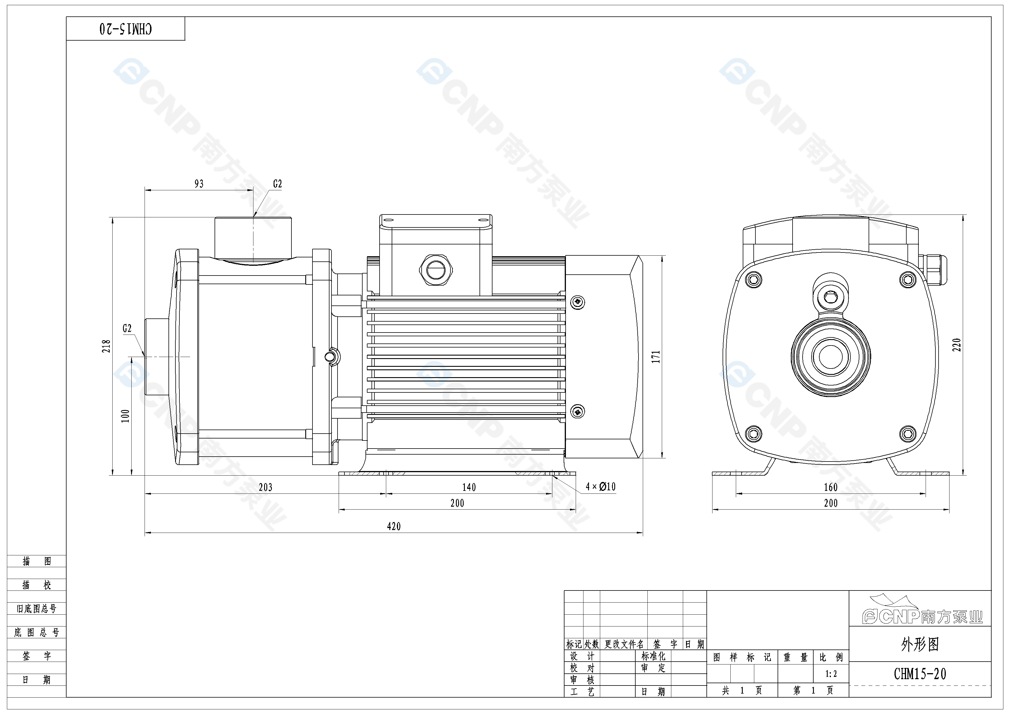 需要南方泵CHM15-20外形CAD文件 请加销售人员微信索取